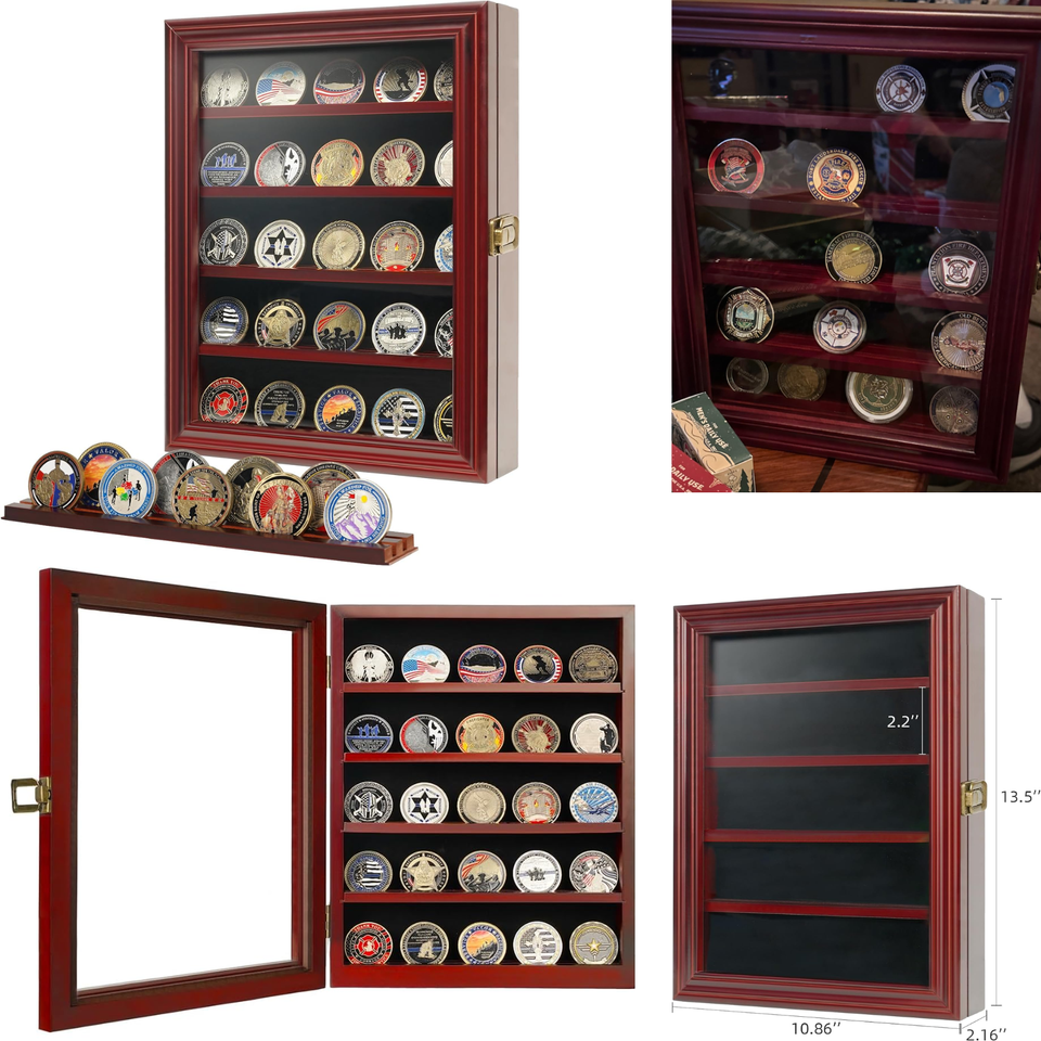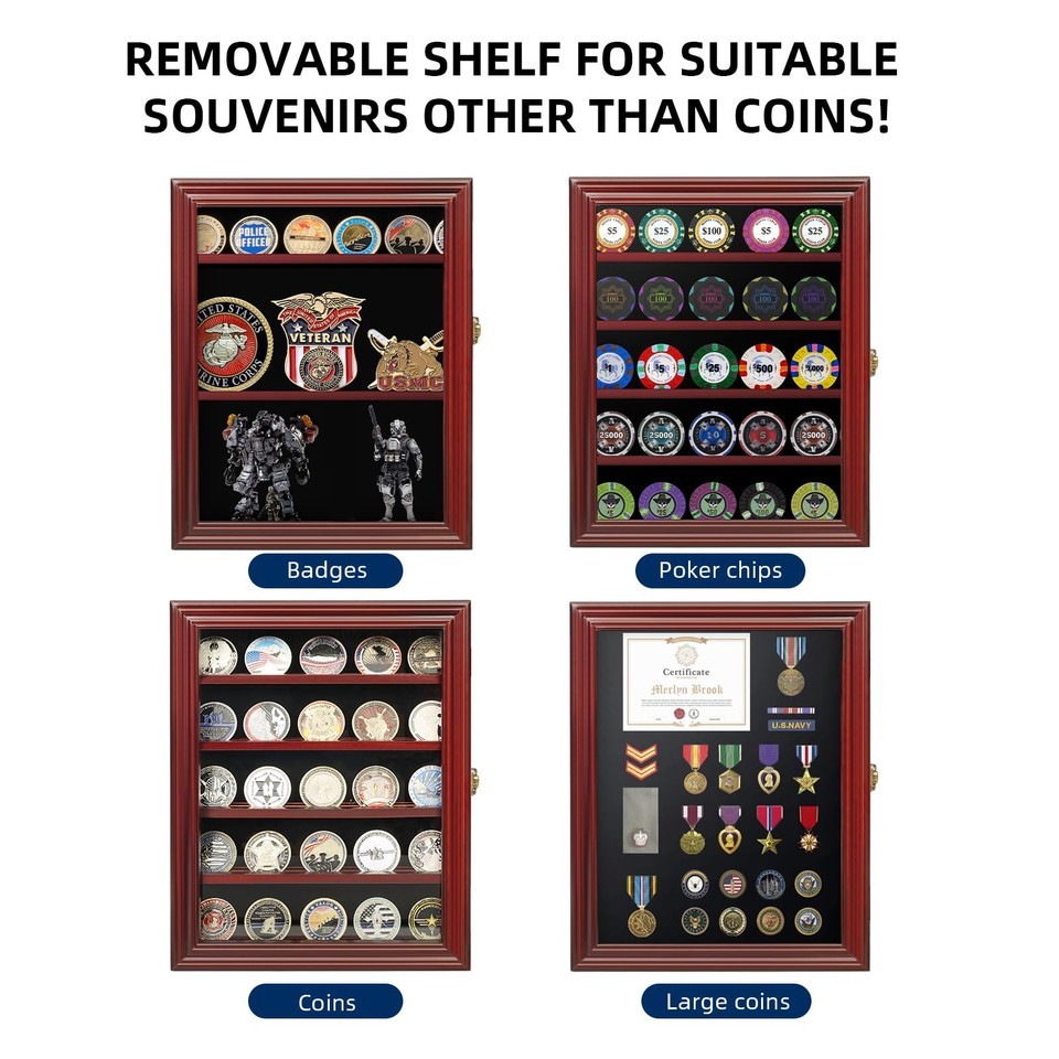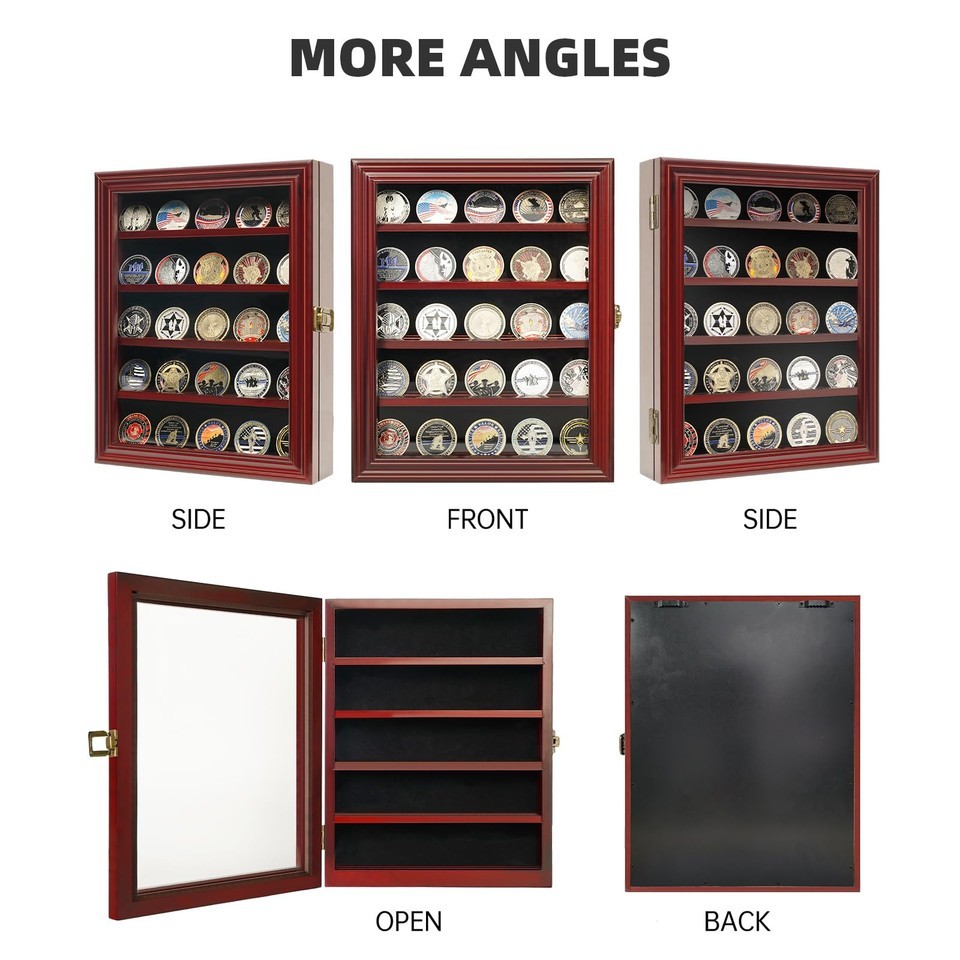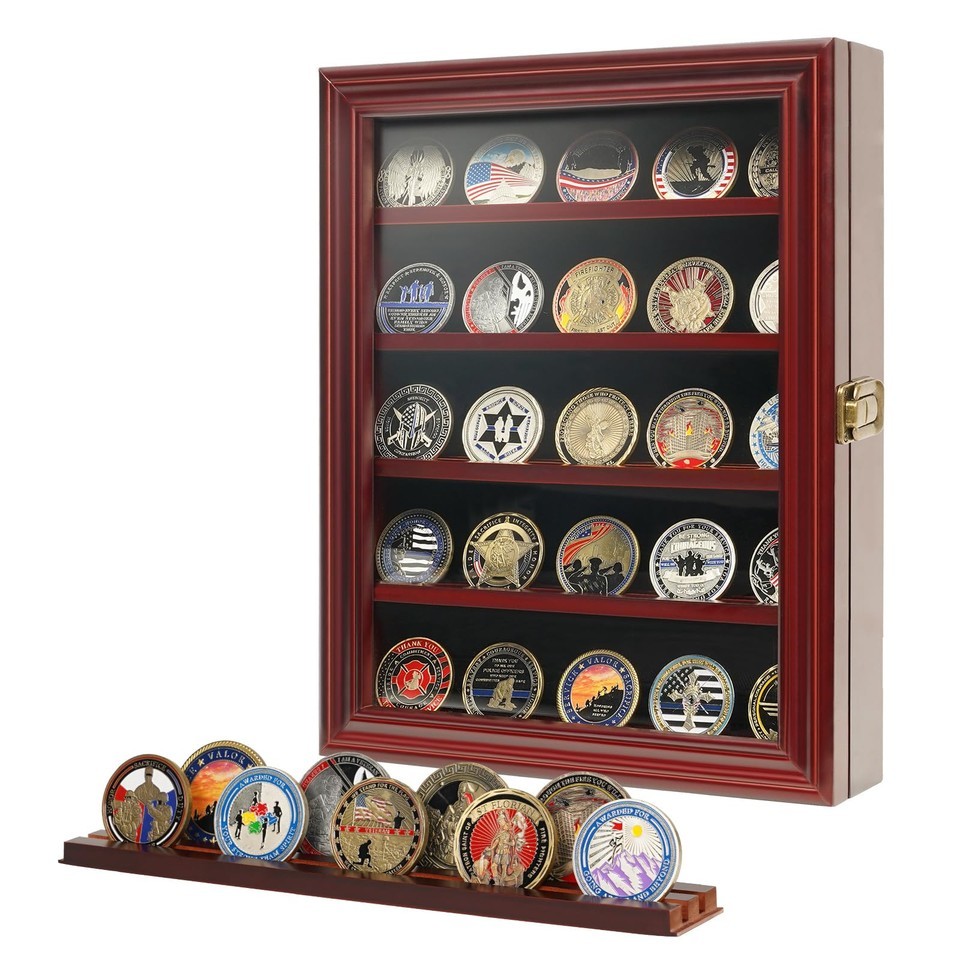 Wooden Challenge Coin Display Case Medal Cabinet Collection Wood Shadow Box Rack