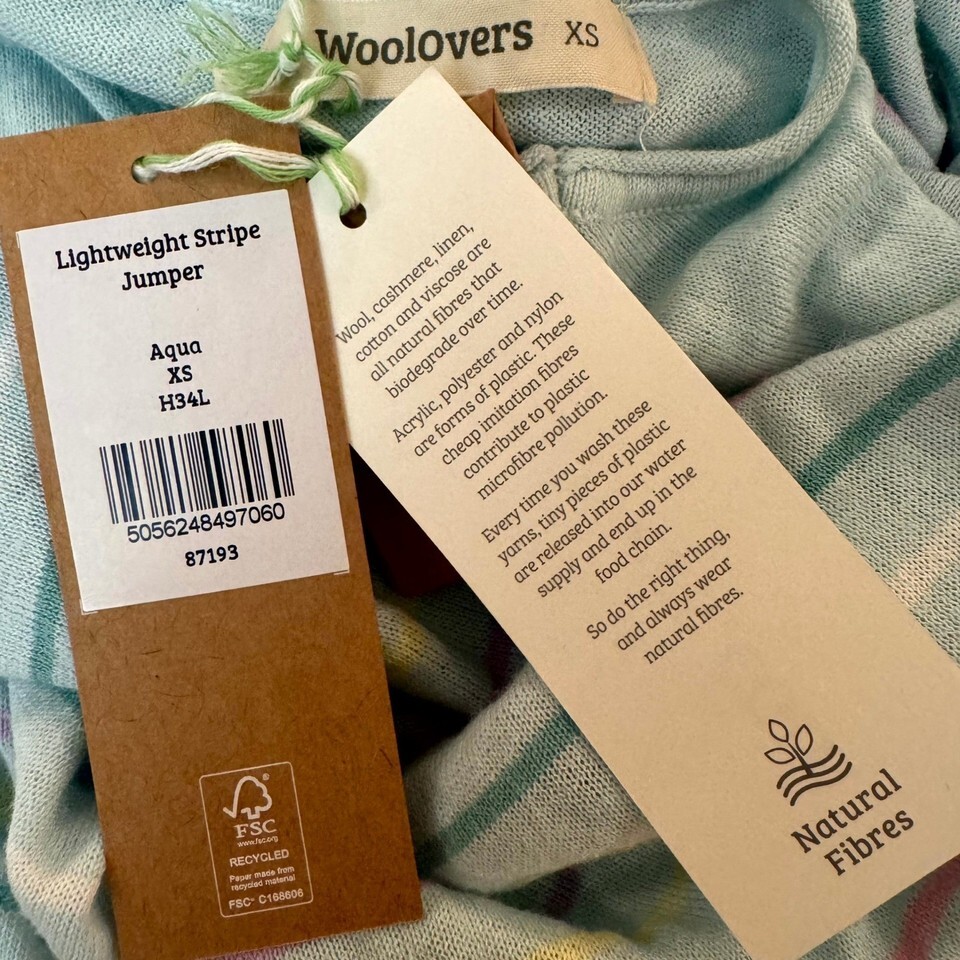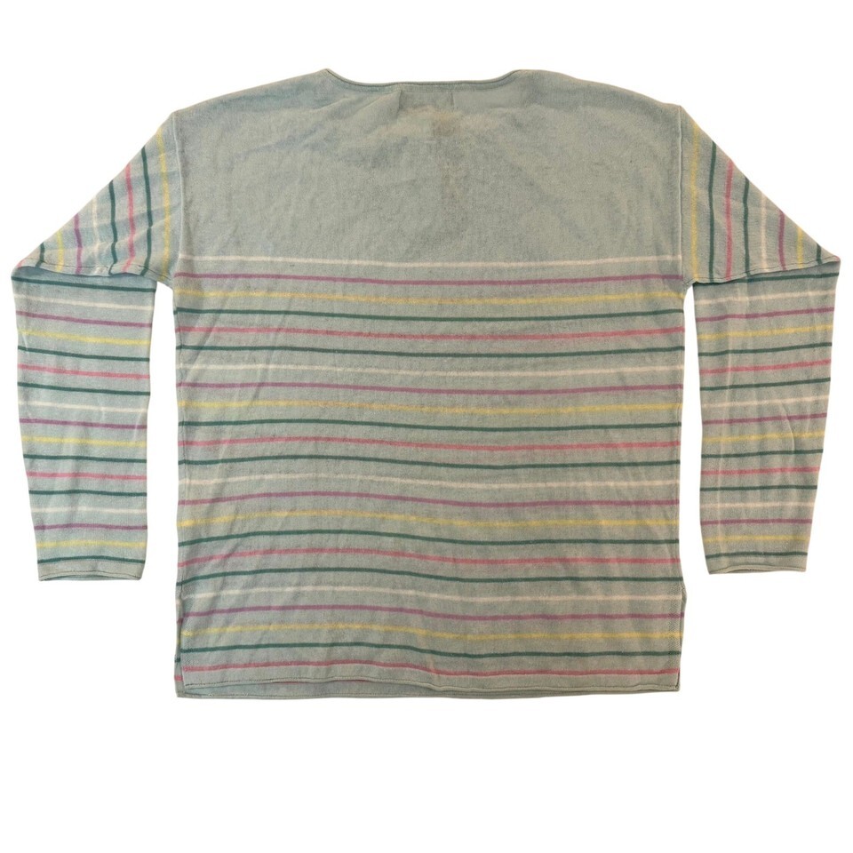 - Woolovers Lightweight Stripe Jumper Aqua Linen Cotton Blend XS NWT