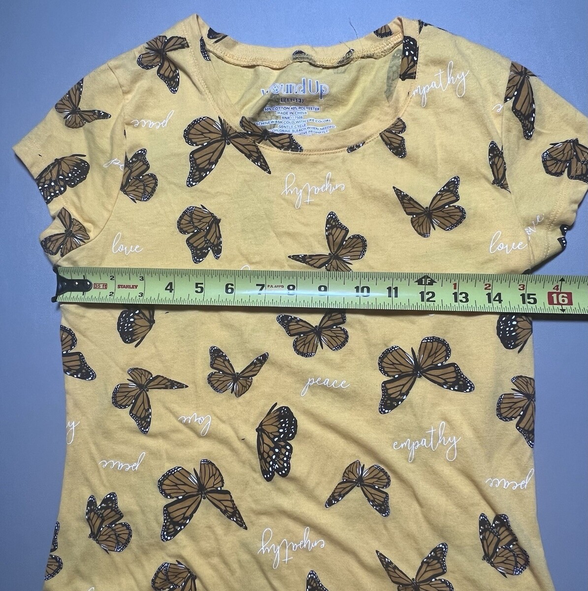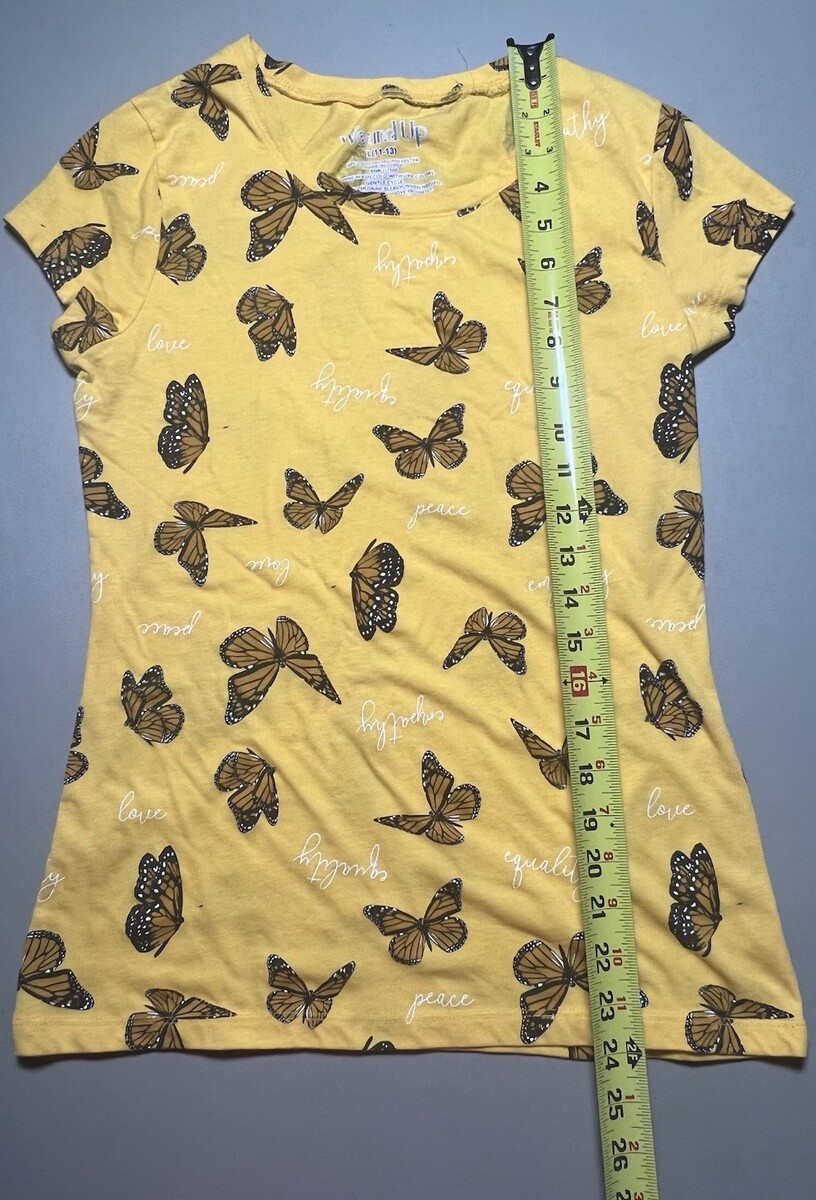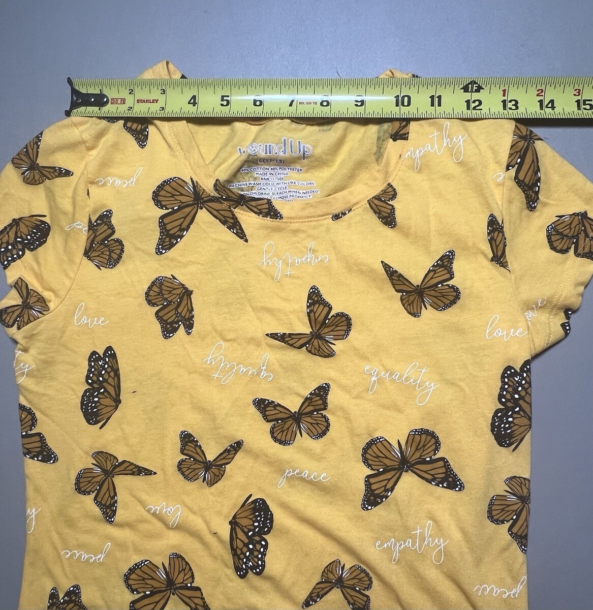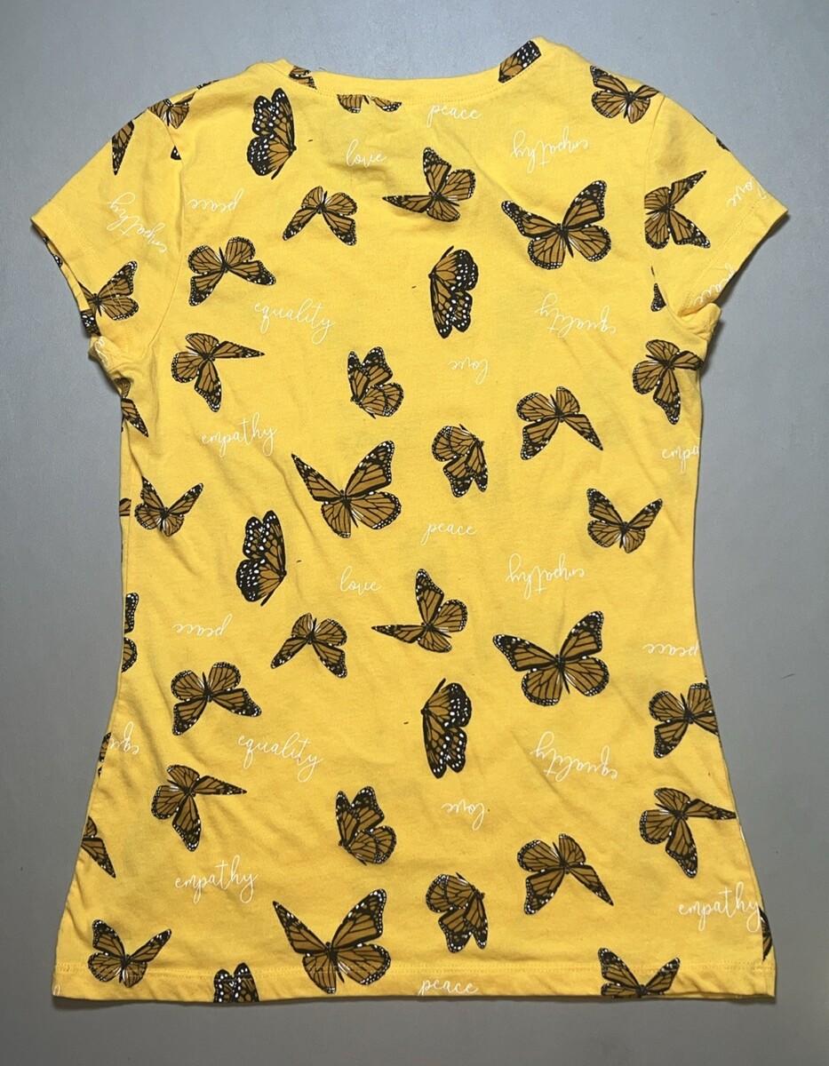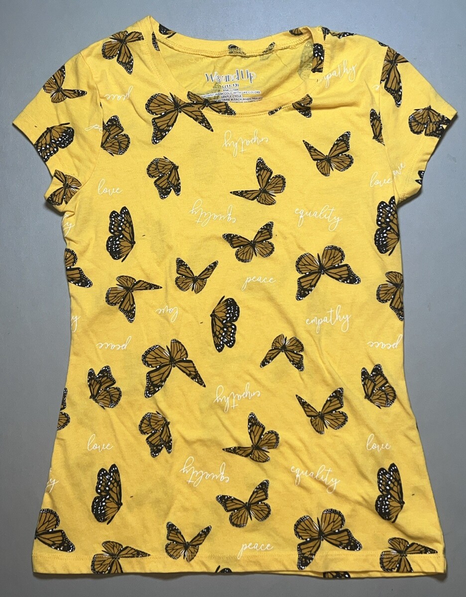 Wound Up Juniors Top L (11-13) Yellow W/Butterflies Peace Empathy Equality Love