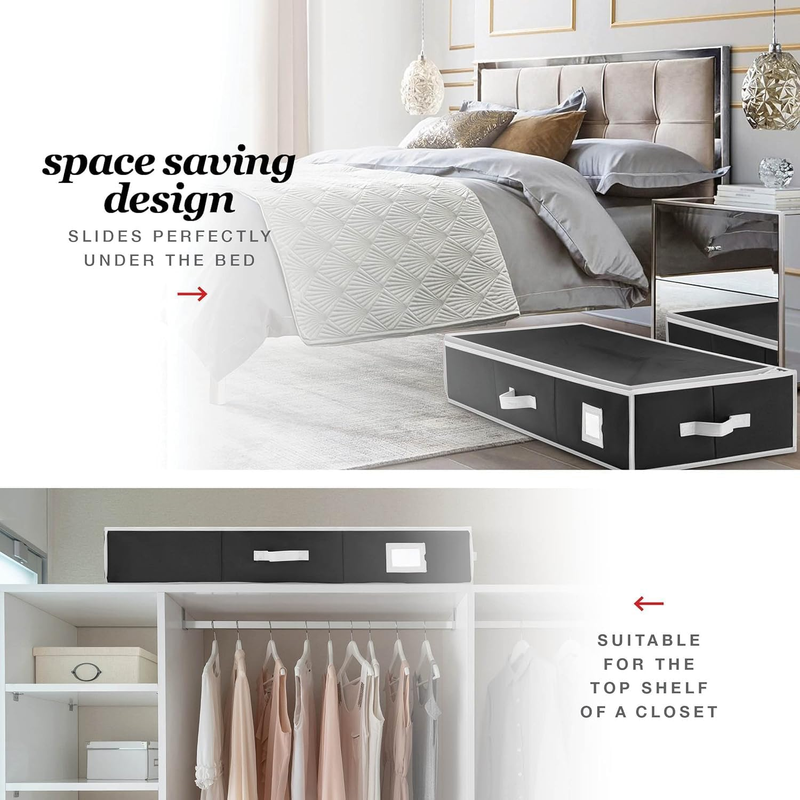 SPACE SAVING - Finally, a gift wrap organizer that fits under your bed or in your closet! No more wasted space on bulky boxes. The Premium Wrap Organizer is the perfect solution for storing all of your Christmas wrapping paper rolls and accessories in this gift wrap storage box.