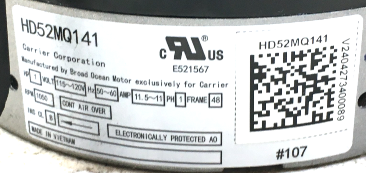 This is Zhongshan Broad-Ocean HD52MQ141 Blower Motor 1HP 115/120V 1050 RPM used part. This part professionally removed from working unit, fully tested, runs great, in excellent cosmetic condition. Old equipment was removed because homeowner upgraded it to a more energy efficient models. Motor is fully tested and runs great. In excellent cosmetic condition as well. Please see more details from the images attached. You will receive exactly the same as pictured. FREE standard Ground mail delivery guaranteed. My handling time is 1 business day only. Purchasing used parts you agree with the statement that sometimes hidden defects or malfunctions may occur during installation or continuous use. There is no warranty on used parts. But you have 30 days satisfaction guarantee and 30 days FREE returns. Most of the parts require specific knowledge and skills to be installed properly. If you don?t have skills or knowledge, you must ask certified HVAC technician to install. I am not liable for any damages or failures as a result of improper installation.