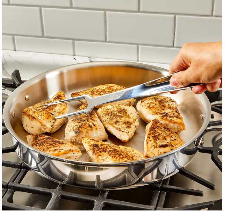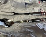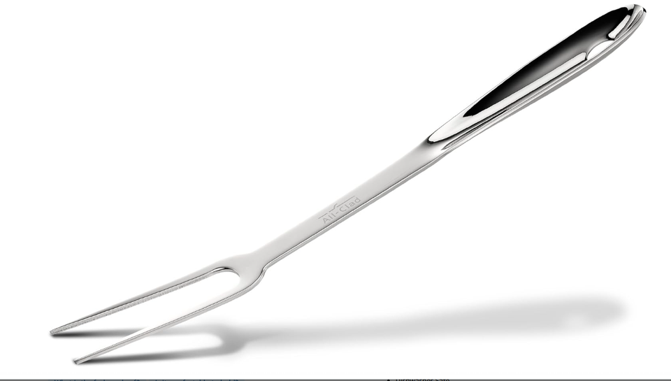 - both All-Clad T104 18/10 Stainless Steel Solid Piece Fork + Slotted Spoon 13in