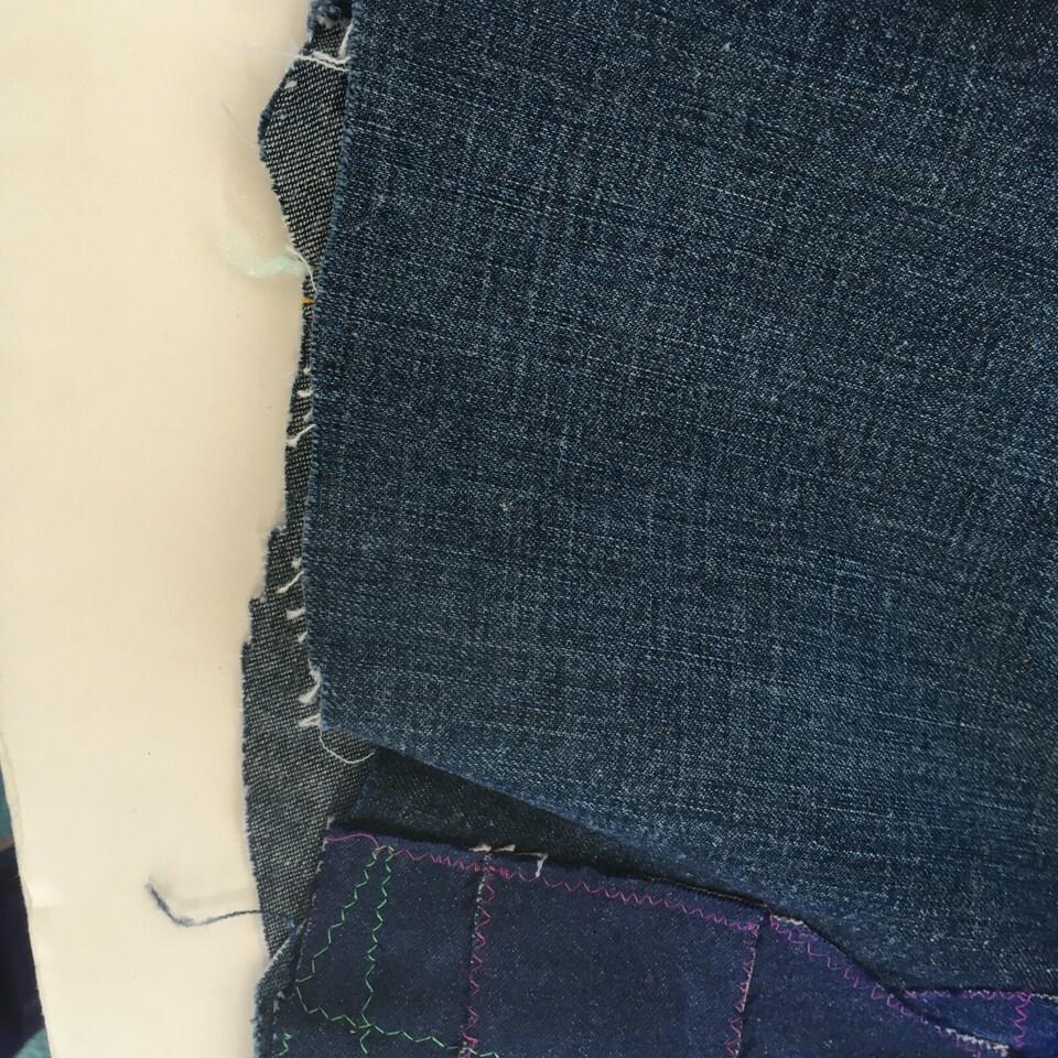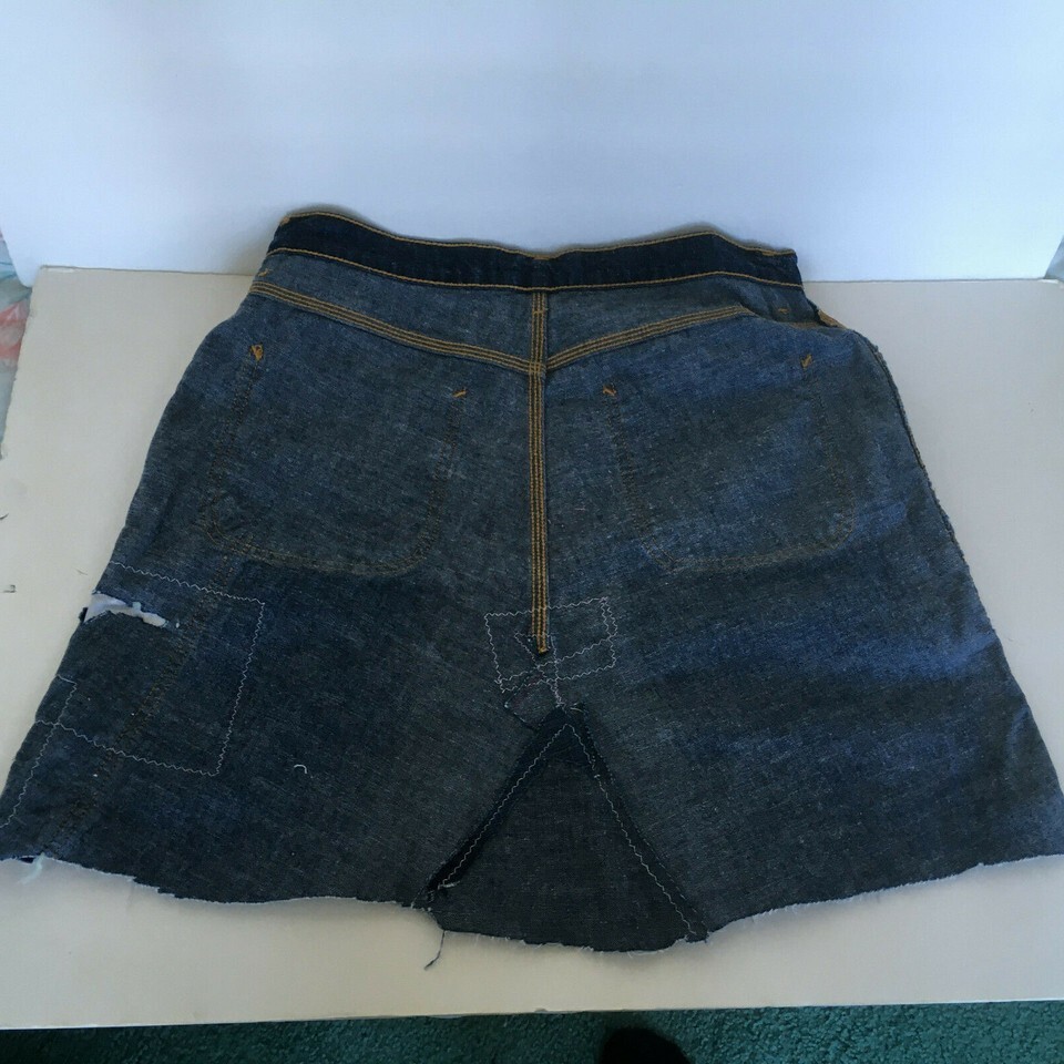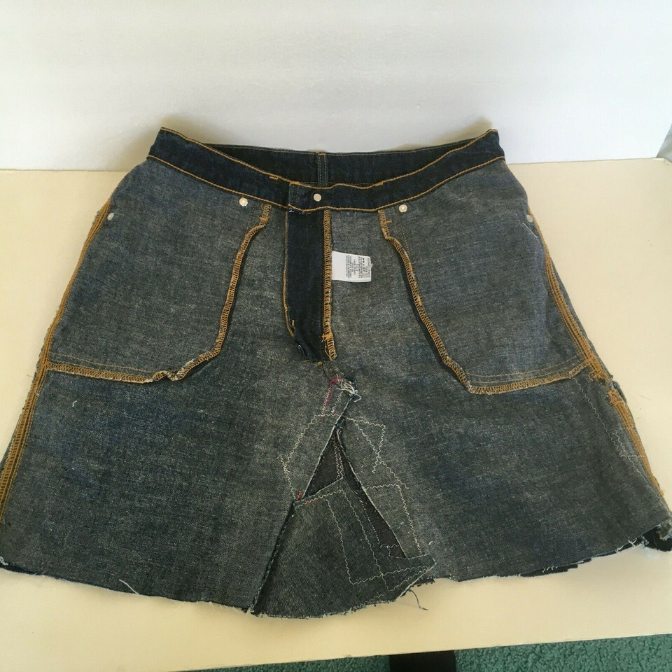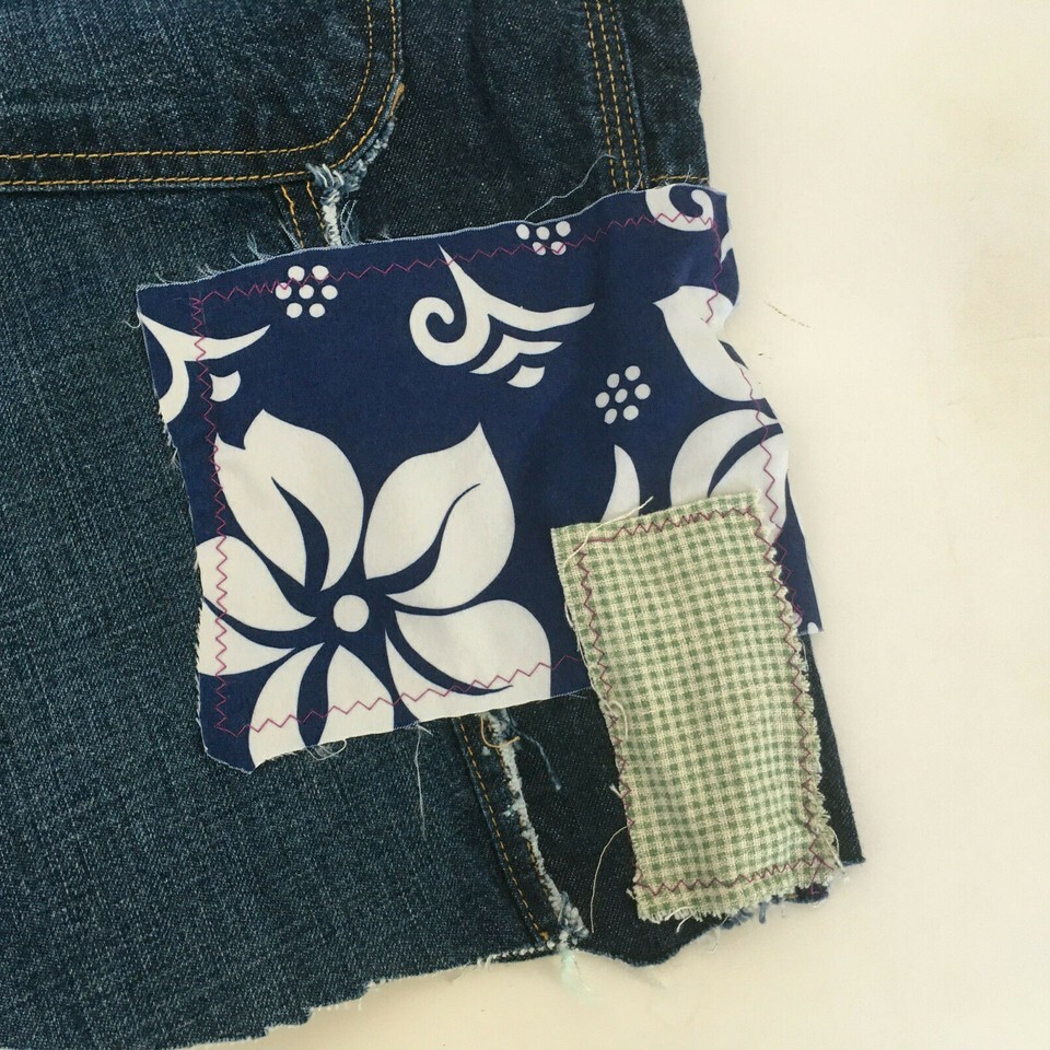 - vintage patch work skirt made from carpentar jeans big pockets frayed edges