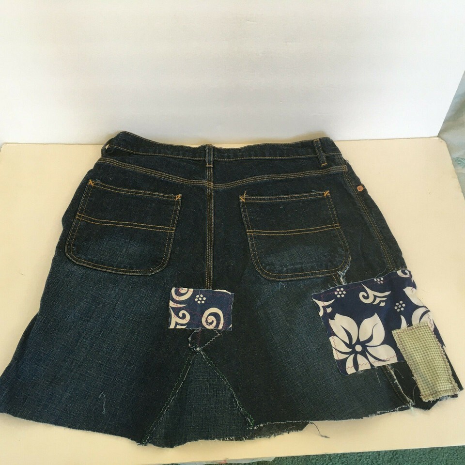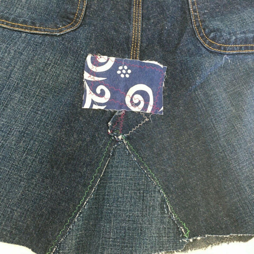 vintage patch work skirt made from carpentar jeans big pockets frayed edges